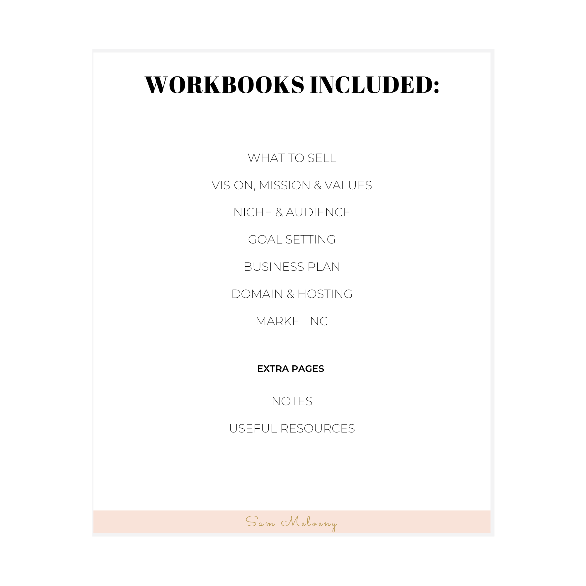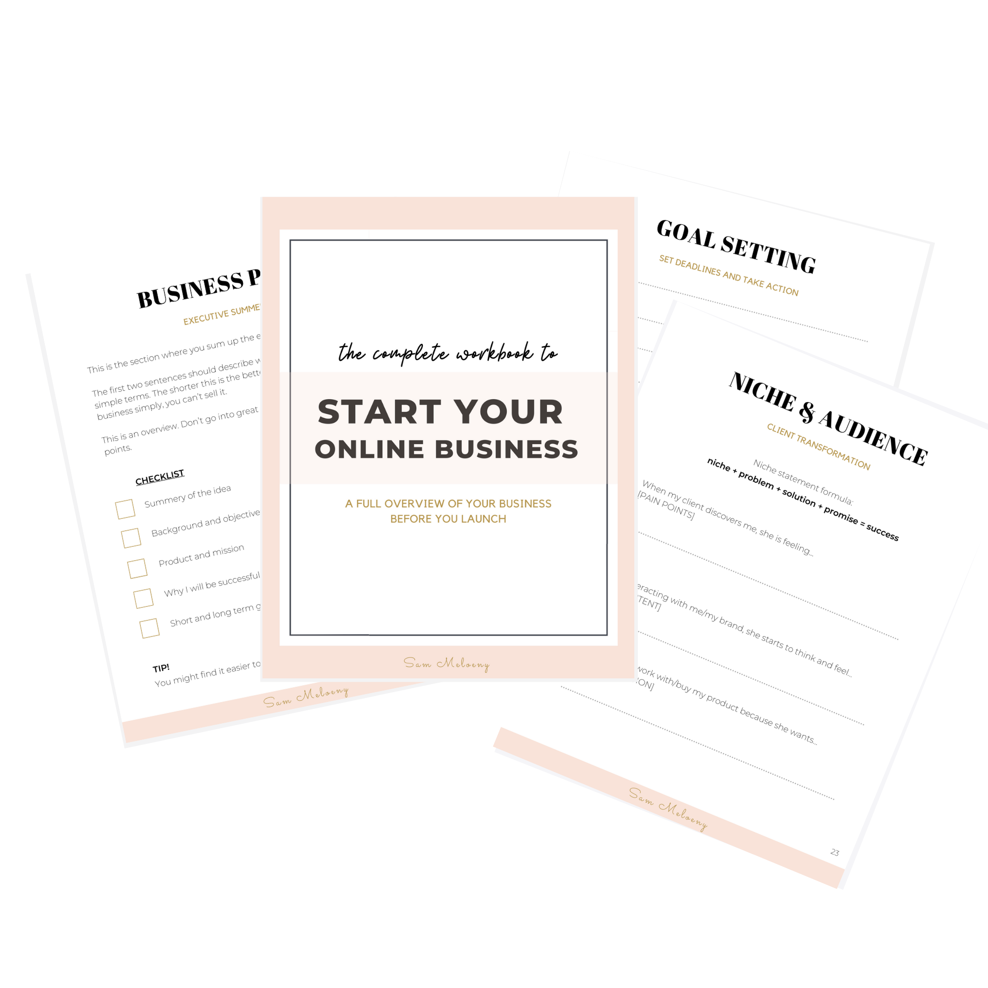 This workbook can be used for any type of online business! It’s perfect if you want to start an eCommerce store, selling a service or digital products.